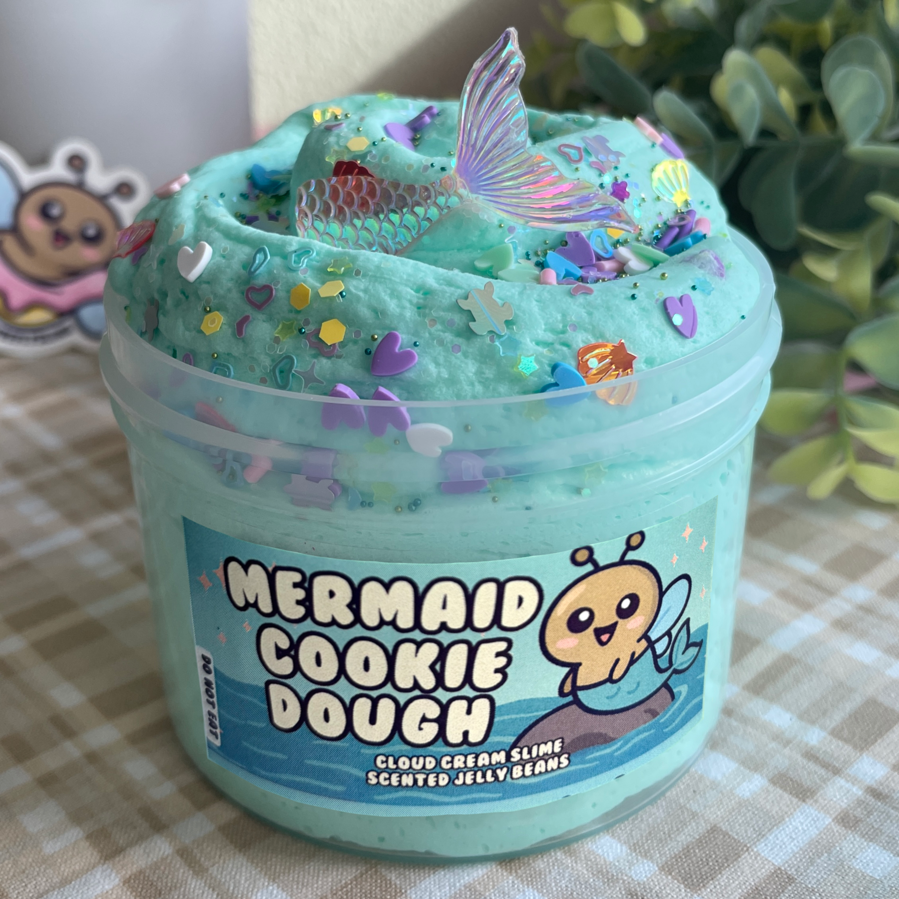 This slime features one of our customer-favorite and most beginner-friendly slime texture that comes topped with assorted mermaid and ocean themed sprinkles and one random mermaid tail charm.